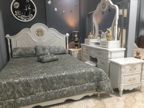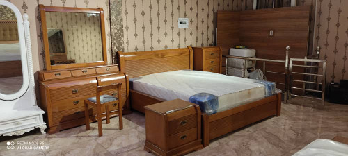 تخت خواب تدی لوله ای با میز ارایش با پا تختی و اینه قدی